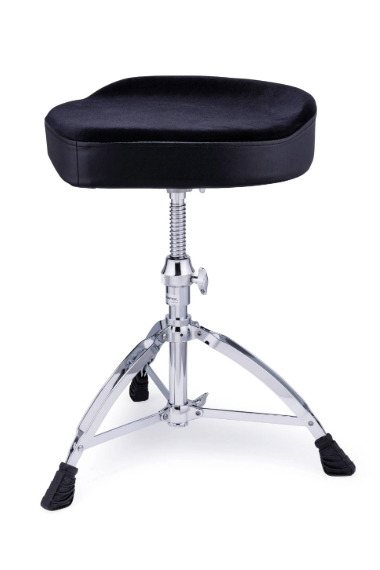 A rounded seat edge facilitates optimized thigh placement, and a 2.5-degree decline prevents drummers from slipping.