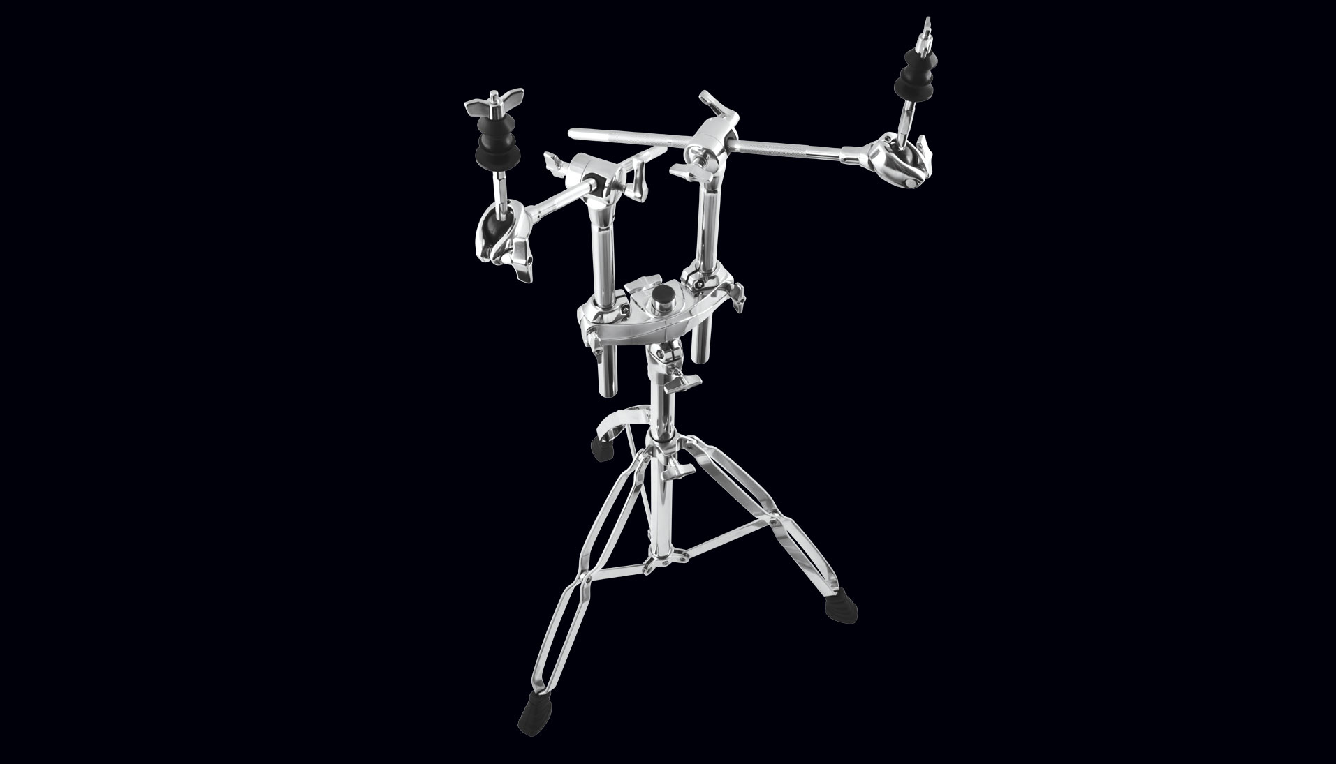 Universal ball-in-socket cymbal and tom arm tilters make positioning easy.