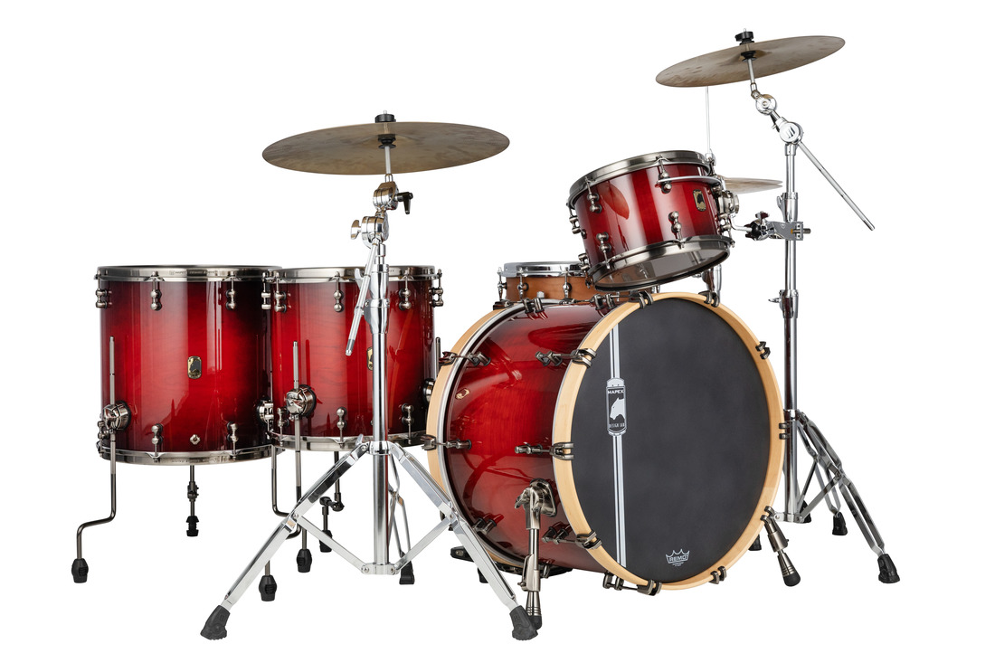 The Black Panther Design Lab Cherry Bomb is a very unique sound for modern drums. Using all cherry wood, the Cherry Bomb’s focus is unmatched. High toms descend in 1/2” depths to retain their drive and punch, producing an incredible Vintage tone with the body of modern drums. The Cherry Bomb system is a hybrid of the classic sounds of beloved vintage drums, with modern hardware and cutting edge technology.