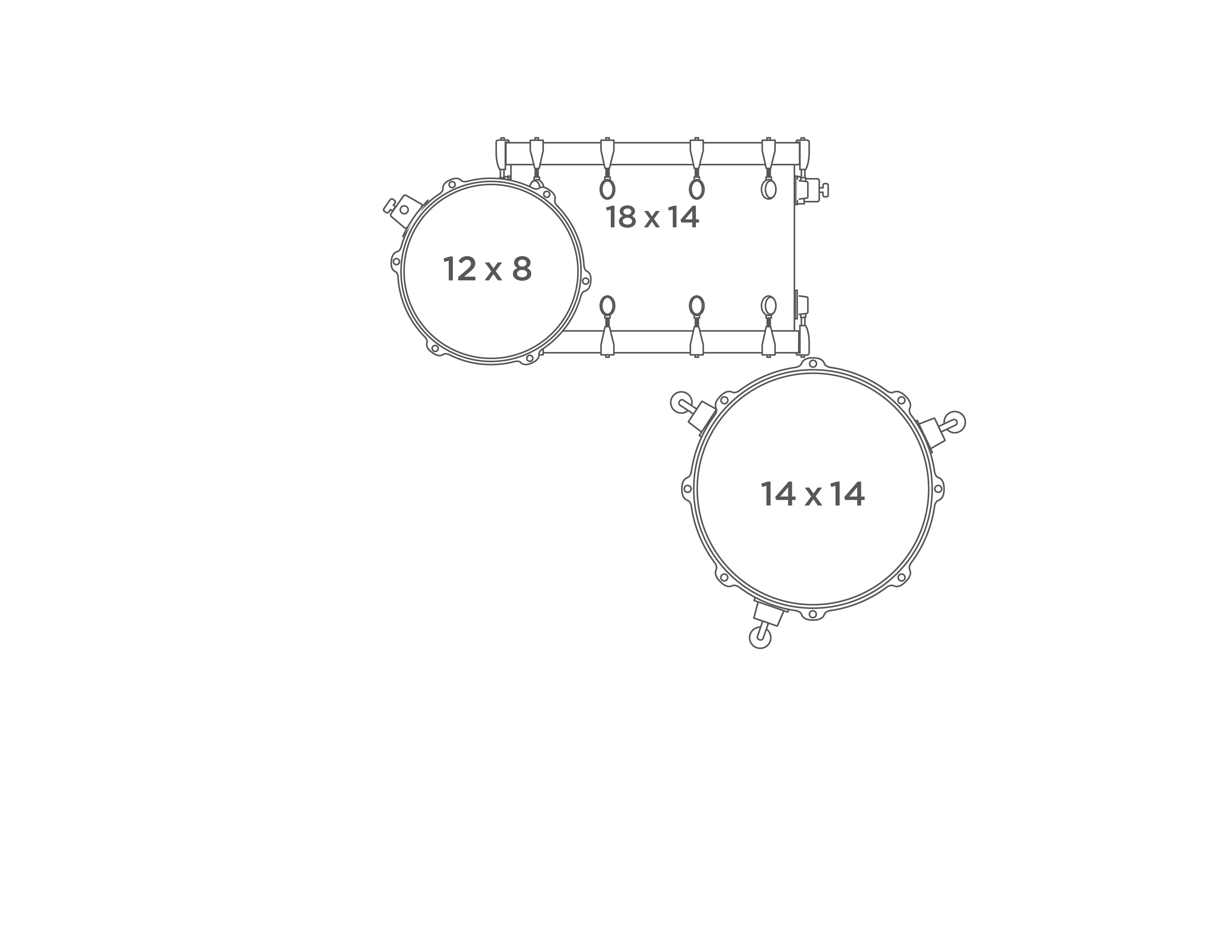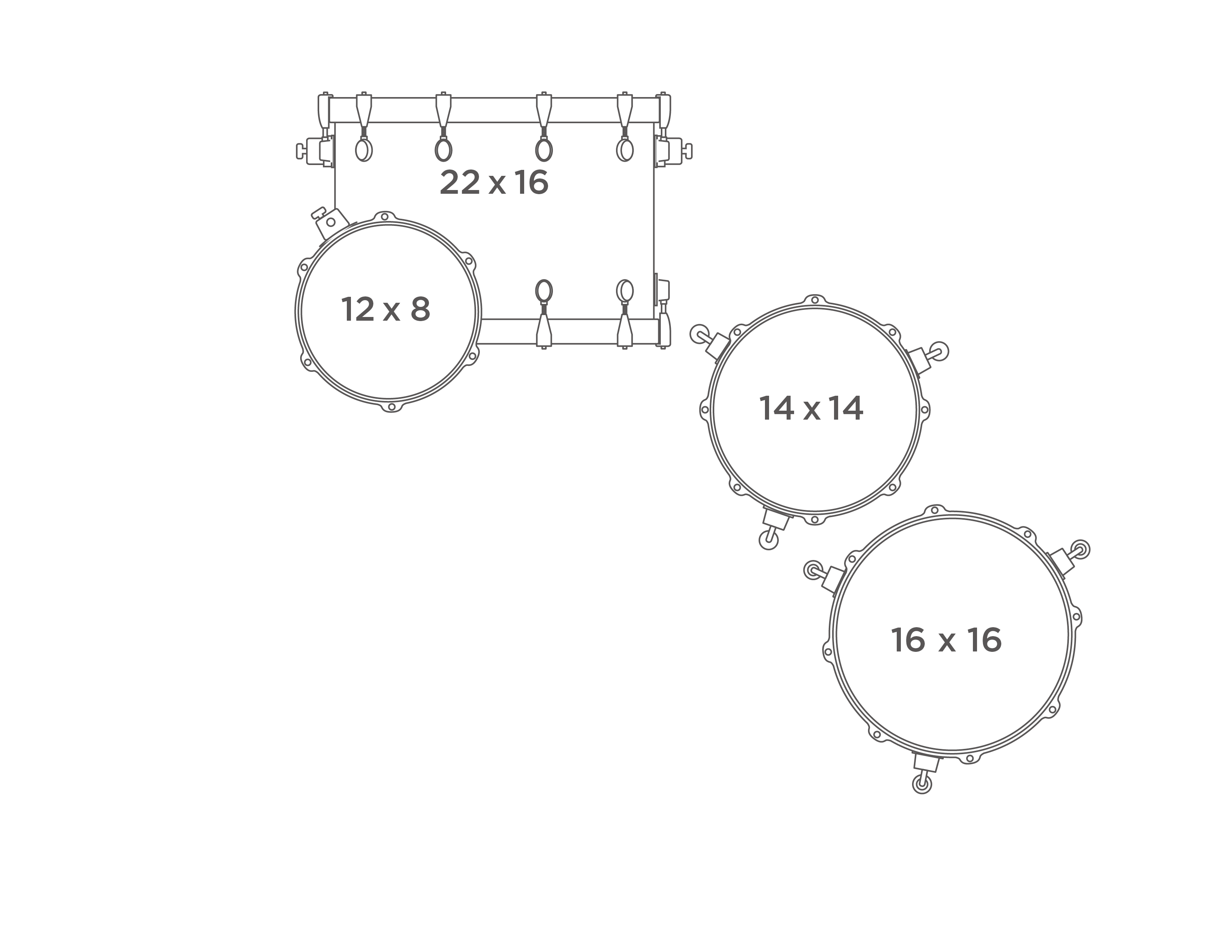 | Plies | Rack Tom (12″): 6-ply, 5.8mm Floor Tom (14″): 6-ply, 5.8mm Floor Tom (16″): 8-ply, 8.2mm Bass Drums(22″) : 8-ply, 8.2mm |