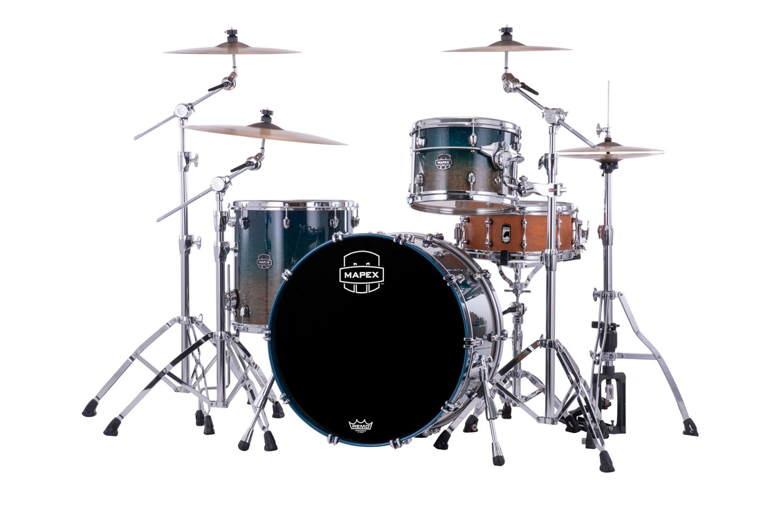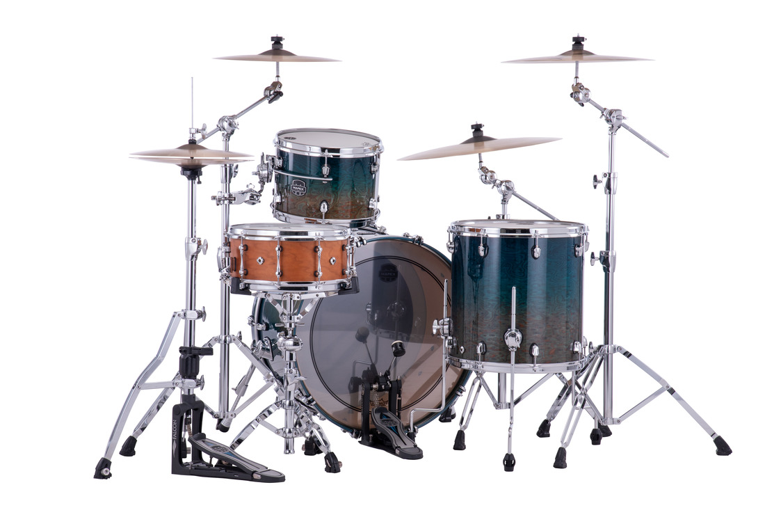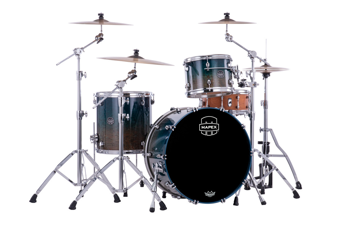 Hybrid-Shelled System - The combination of a maple/walnut bass drum and birch/walnut toms is our bold interpretation of today's modern drum sound. The birch toms deliver clear and punchy sounds in the high register while the maple kick produces a warm, round tone in the low end. The result is a redefined sonic identity that speaks to today's music scene.