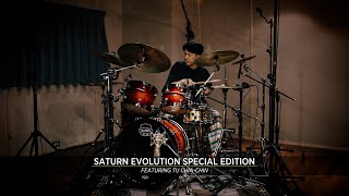 Featuring a uniquely designed badge adorned with elegant golden letters, this striking detail not only enhances its visual appeal but also reflects the premium craftsmanship of this special edition drum kit.