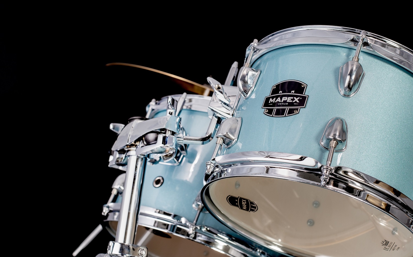 The Venus Series presents an all-inclusive setup for the first-time player ready to start the "Drummer for Life" adventure. The 100% poplar shells appointed with Mapex SONIClear™ bearing edges produce rich tones from the toms, a robust crack from the snare drum and a punchy low thump from the bass drum.